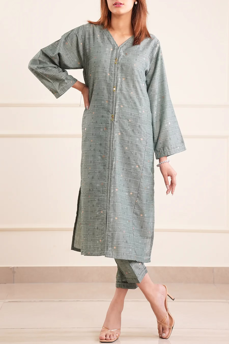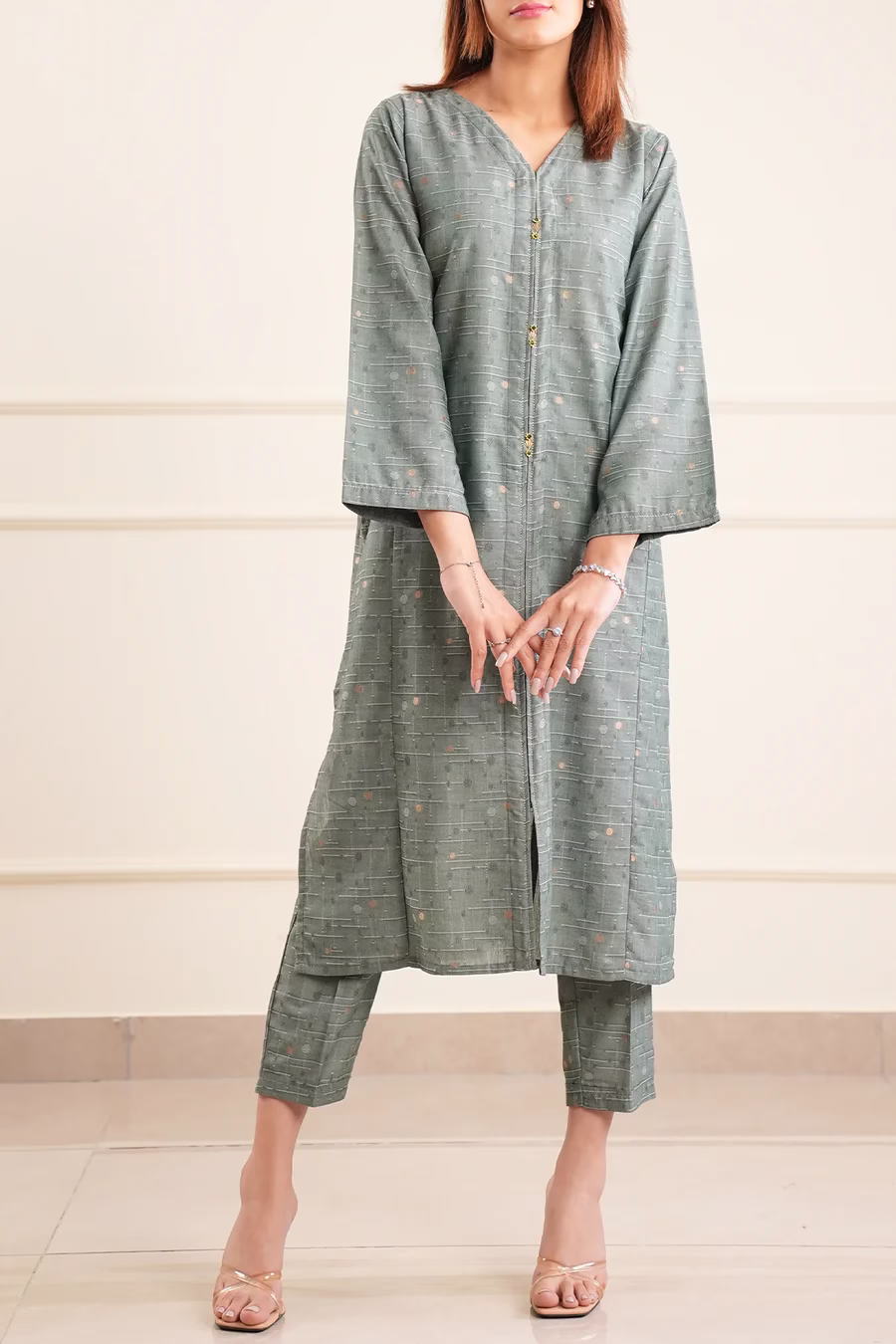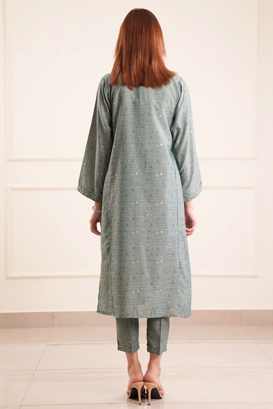 Cotton Jacquard Green Stitched 2 Piece (Shirt/Trouser)|Saya| Annisafashion