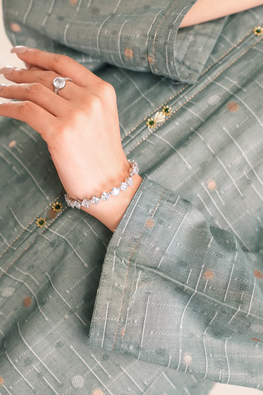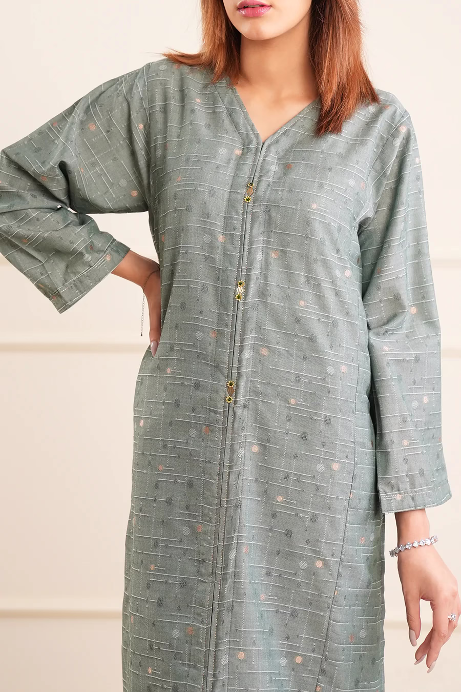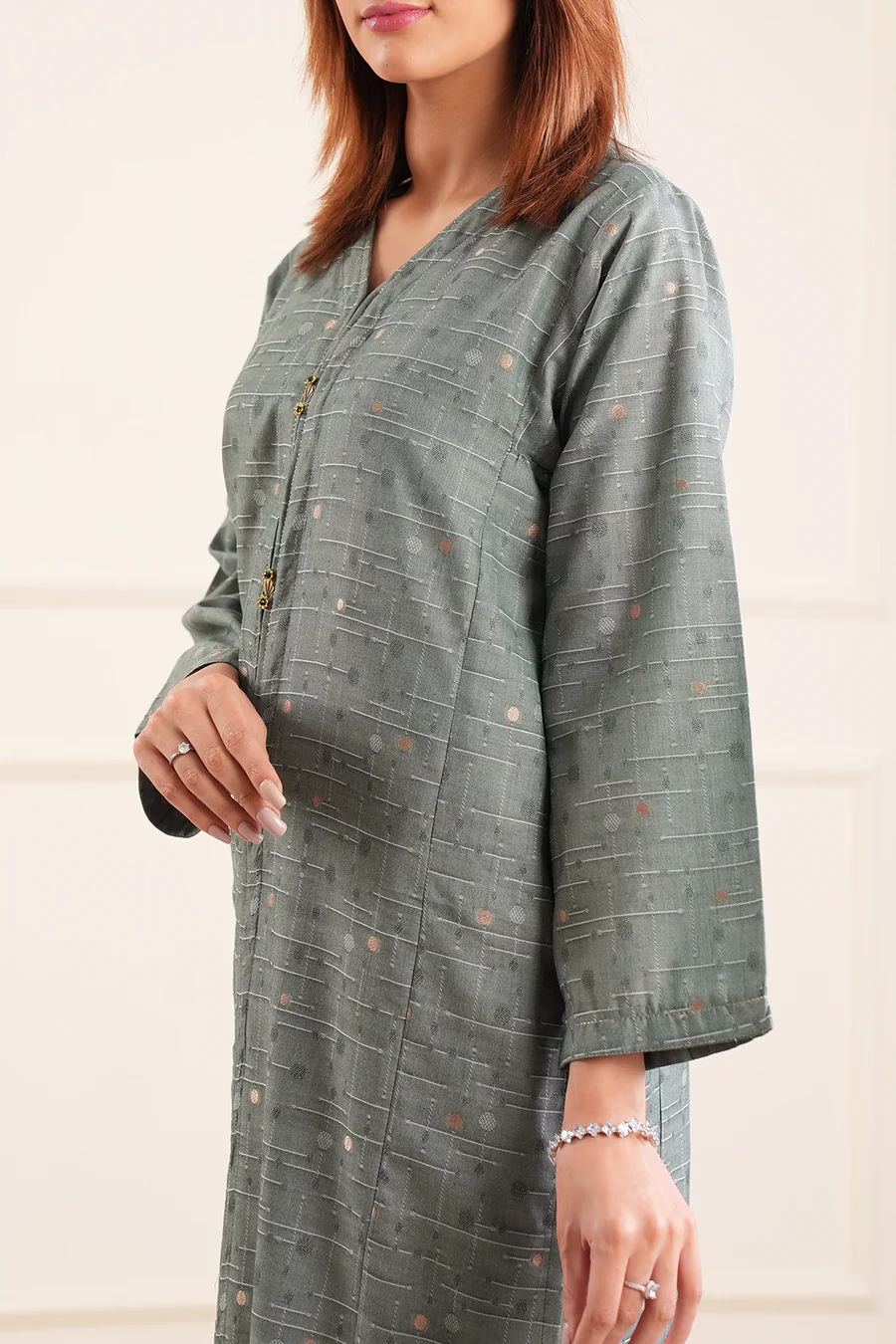 Cotton Jacquard Green Stitched 2 Piece (Shirt/Trouser)|Saya| Annisafashion