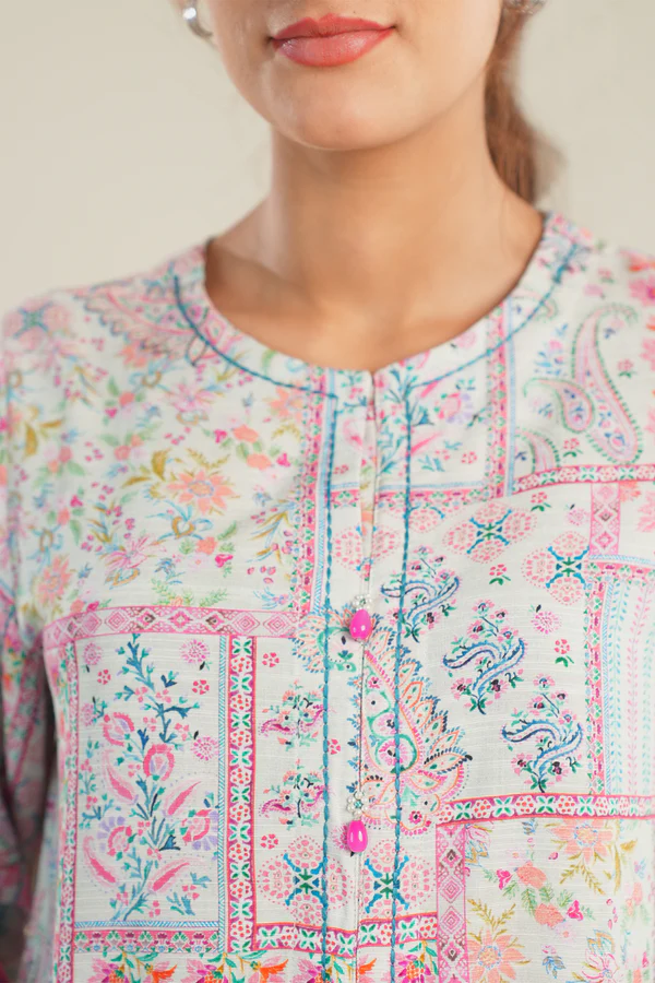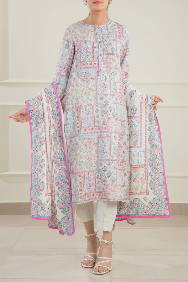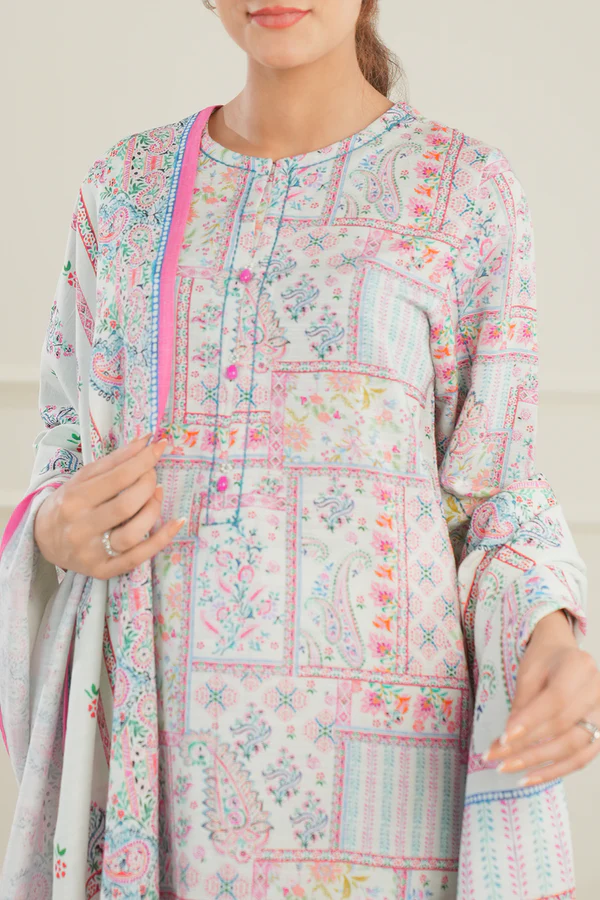 IVORY Lawn Stitched Printed Suit – 3-Piece PRET Suit