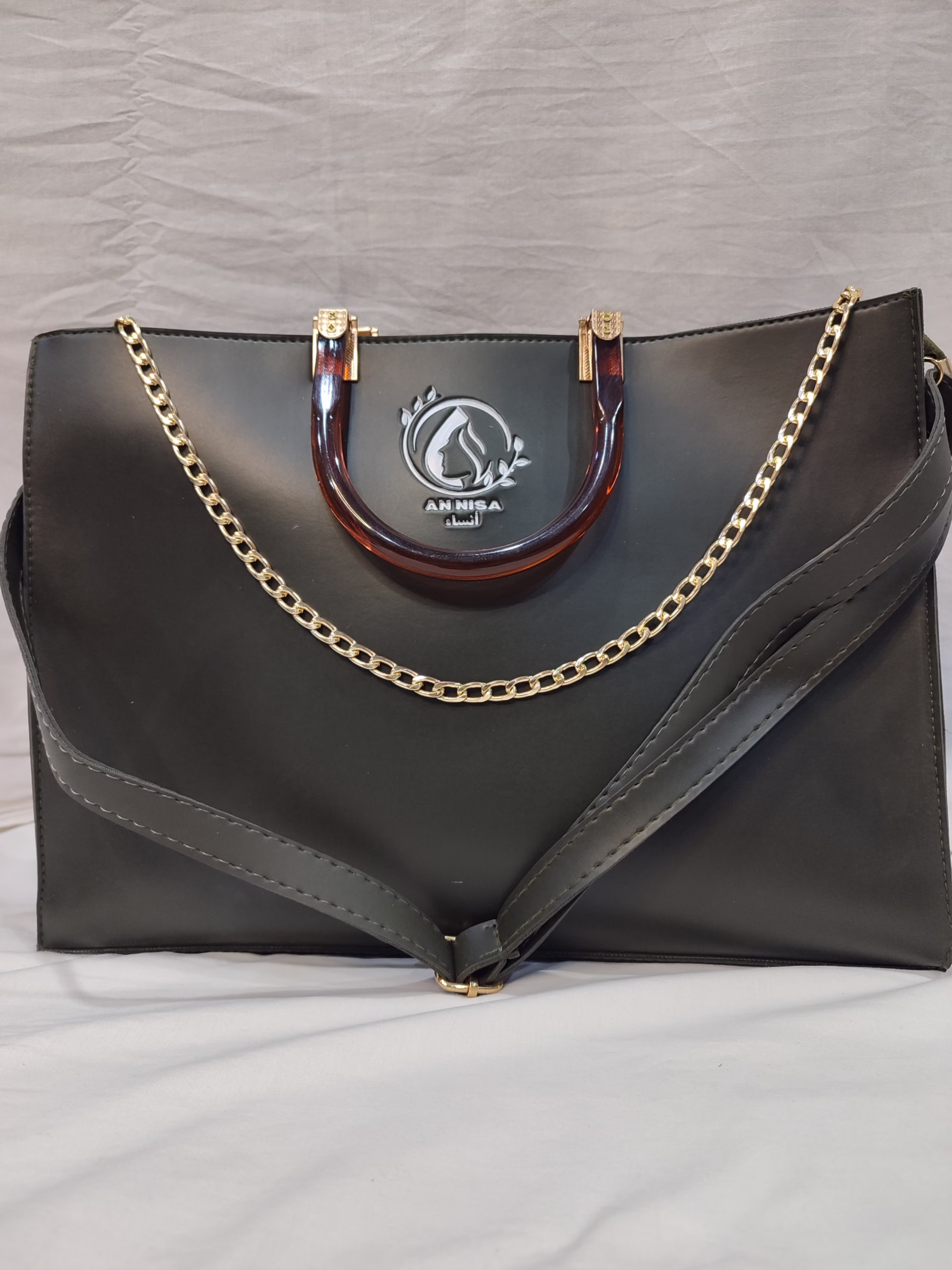 JASMINE by Annisafashion – Elegant Olive Green Structured Satchel Bag
