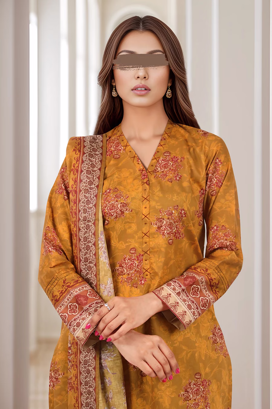 Mustard Lawn Stitched Printed Suit | Stylish 3-Piece PRET | Annisafashion
