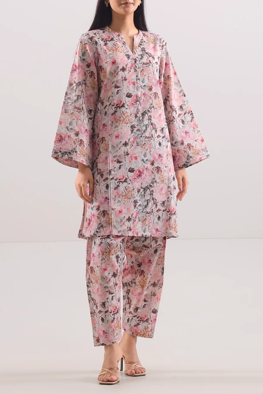 Premium Printed Cotton Khaddar Unstitched 2 Piece | Baby Pink | Saya | Annisafashion