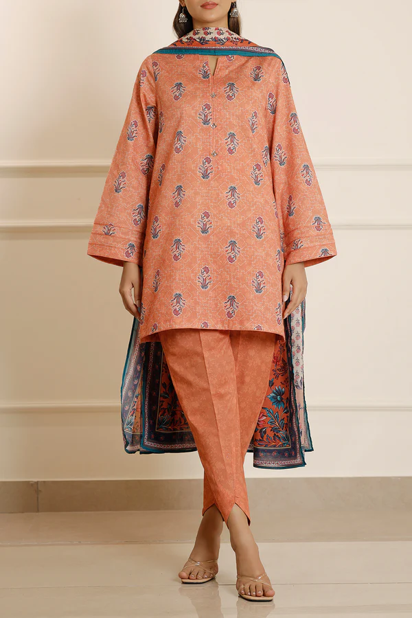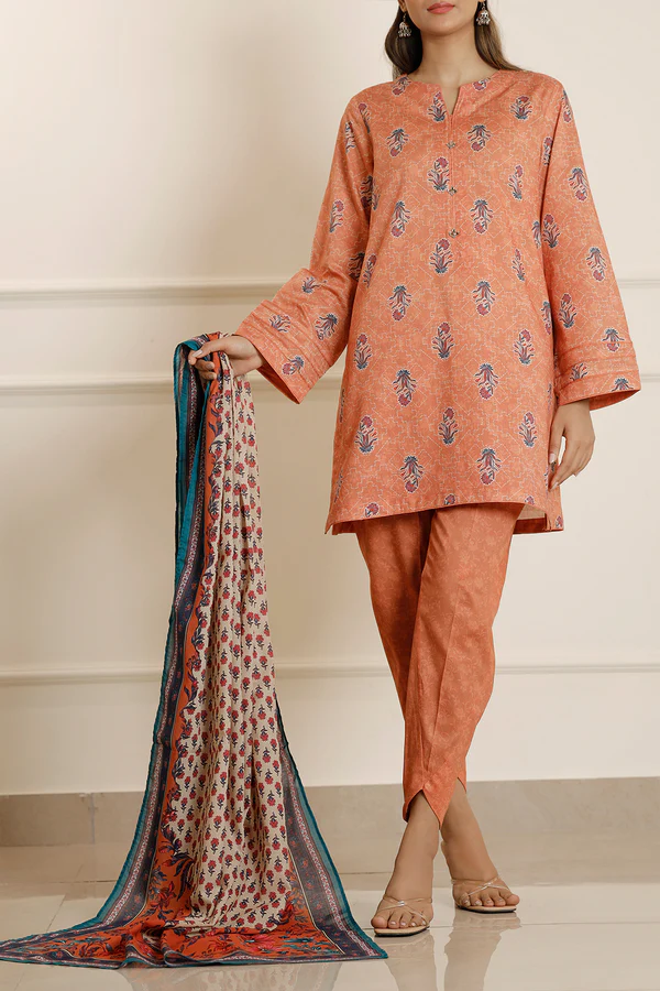 Elevate your style with the Rust Lawn Stitched Printed Suit, a vibrant and comfortable 3-piece PRET ensemble. The shirt features a stunning digital print on soft, breathable lawn fabric, while the perfectly tailored cambric trousers offer durability and comfort. Ready to wear with no alterations needed, this suit is ideal for casual or semi-formal occasions. Its vibrant color and sleek design make it a versatile choice for any season, offering both style and ease. Perfect for women who want a chic, effortless look!