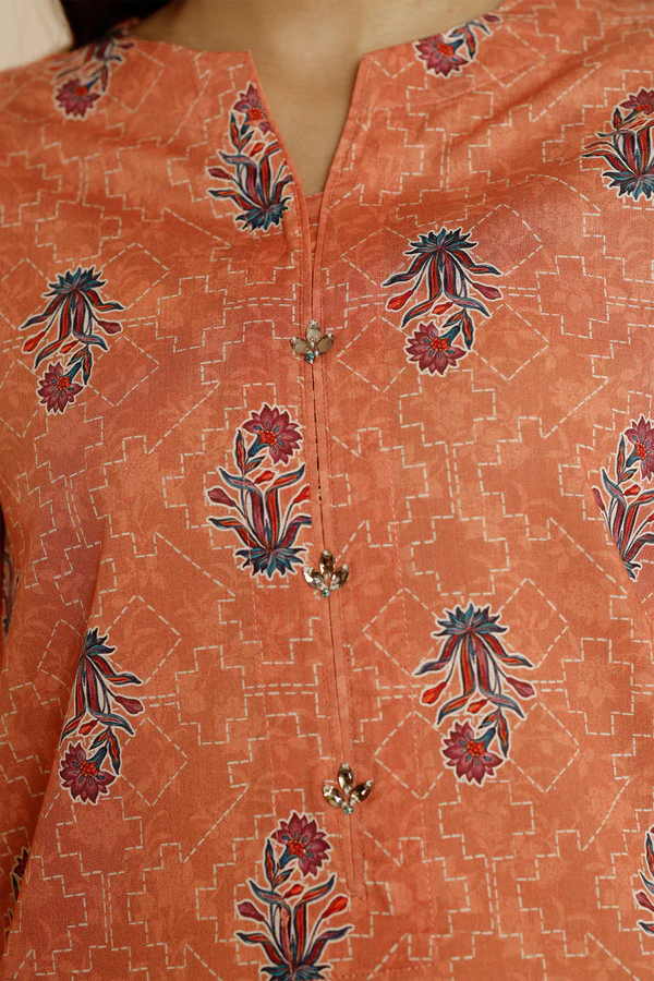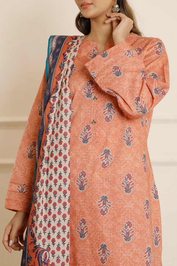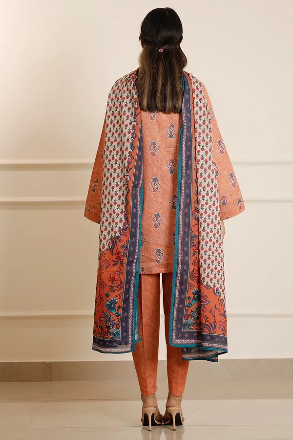 RUST Lawn Stitched Printed Suit – 3-Piece PRET Suit