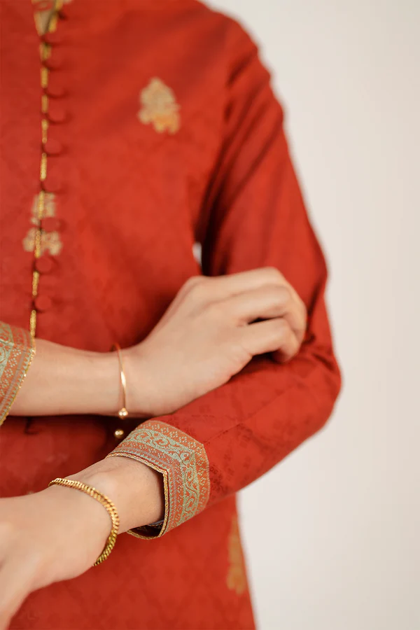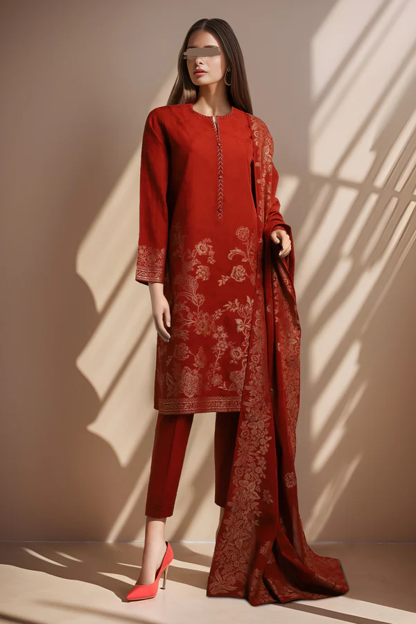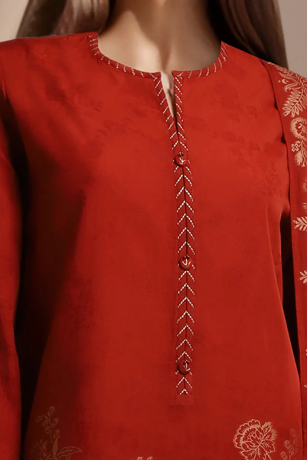 Saya Cinnamon Rust | Jacquard Cotton Suit for Women | 3-Pc Unstitched Suit