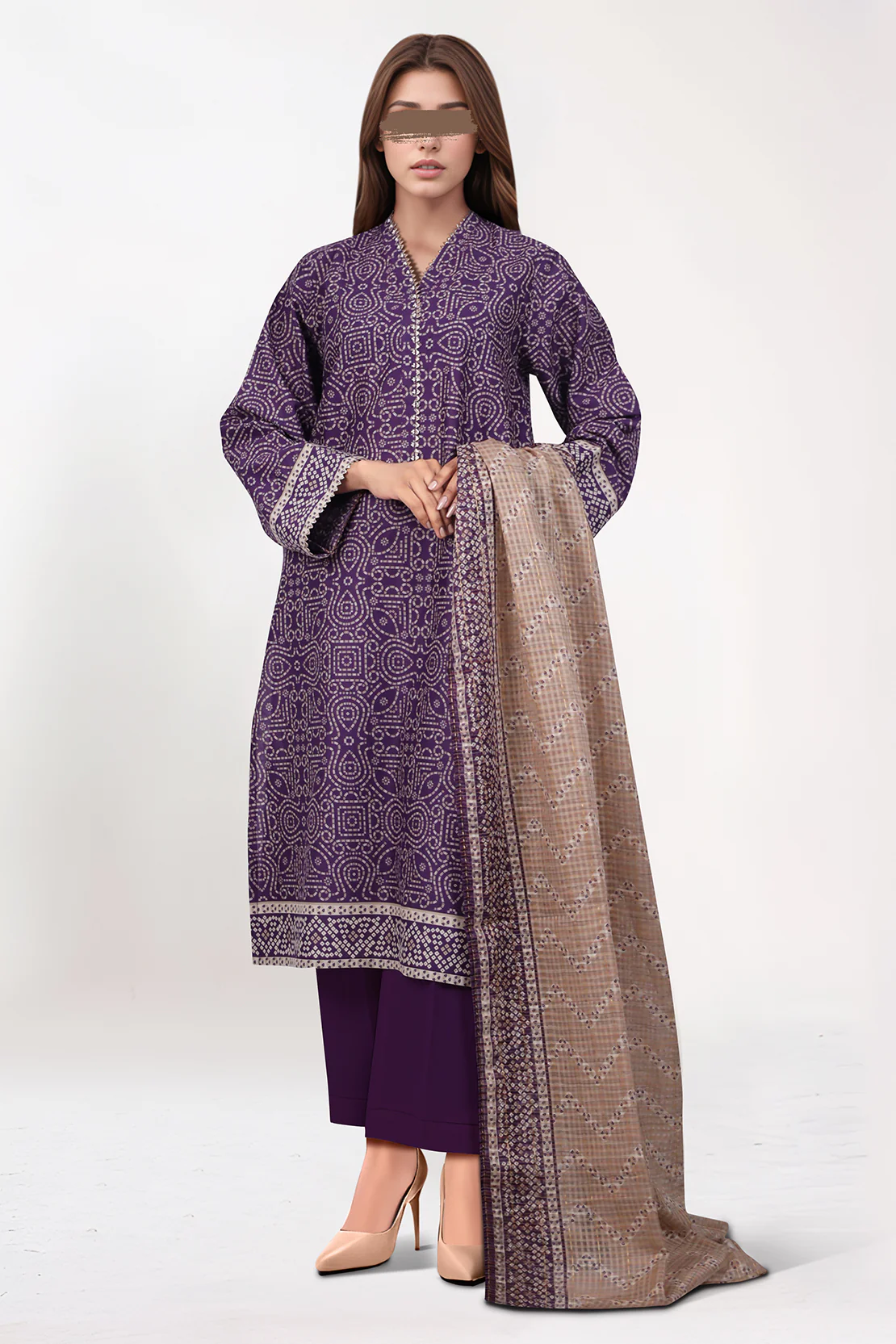 Saya Purple Lawn Suit for Women | 3-Pc Unstitched Suit