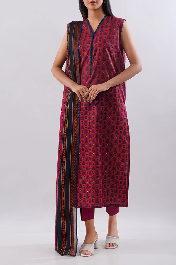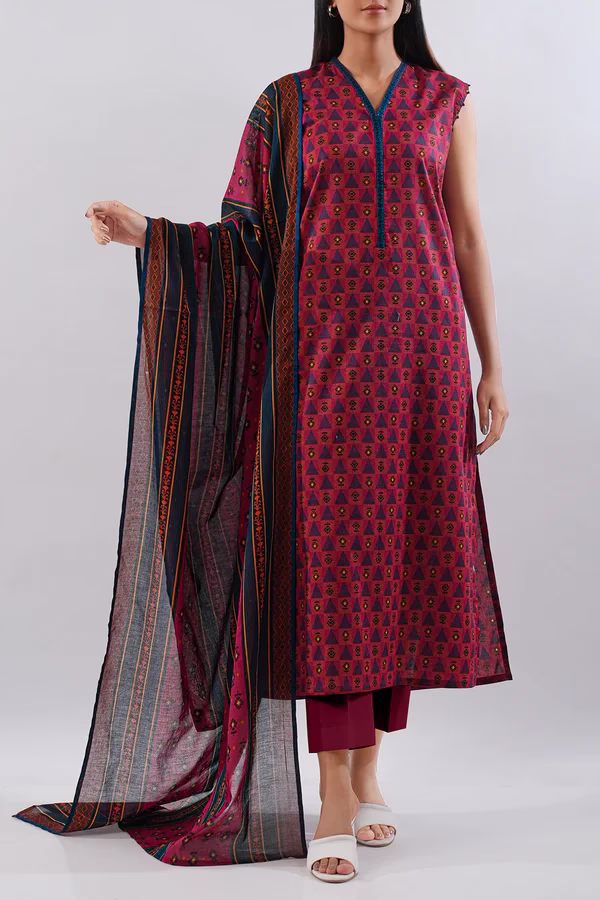 Crafted from premium lawn fabric, the unstitched shirt features a soft texture and a vibrant Red color with an elegant printed design. The printed lawn dupatta adds a touch of flow and femininity, while the dyed cambric trousers complete the look with a clean, breathable finish — ideal for hot weather.
