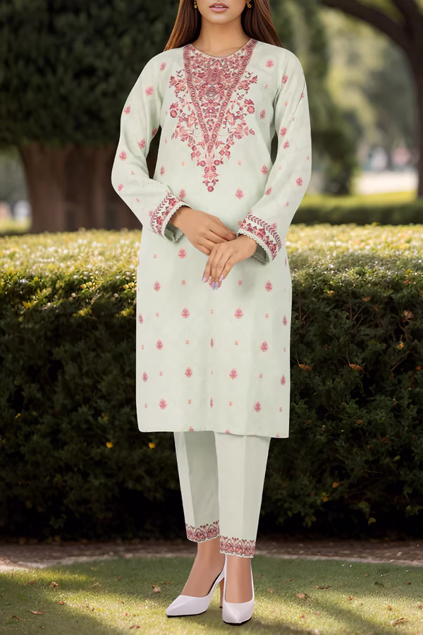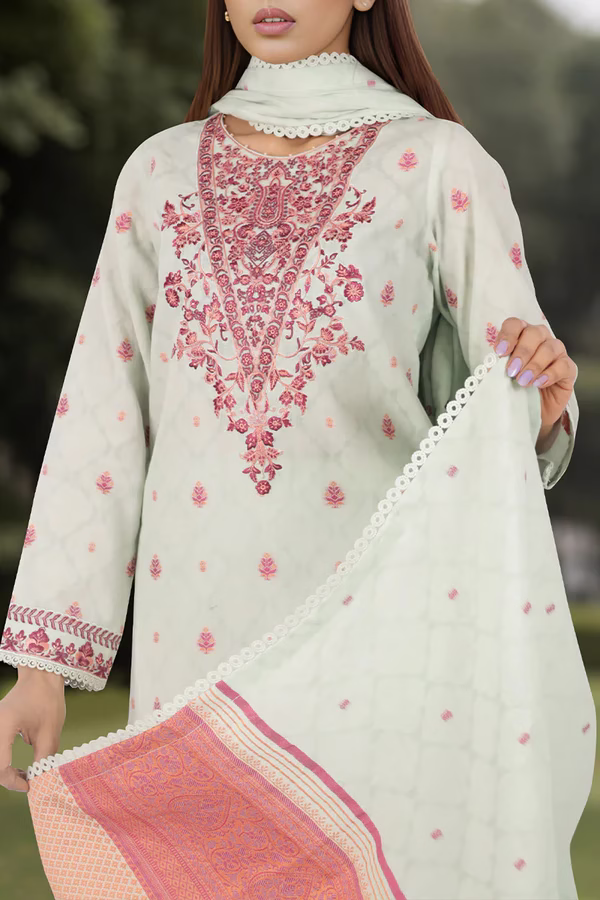 Elevate your wardrobe with this stunning unstitched 3-piece suit from Annisa Fashion. This elegant set features a beautiful mint green color and a blend of premium fabrics, now available at a special discounted price.