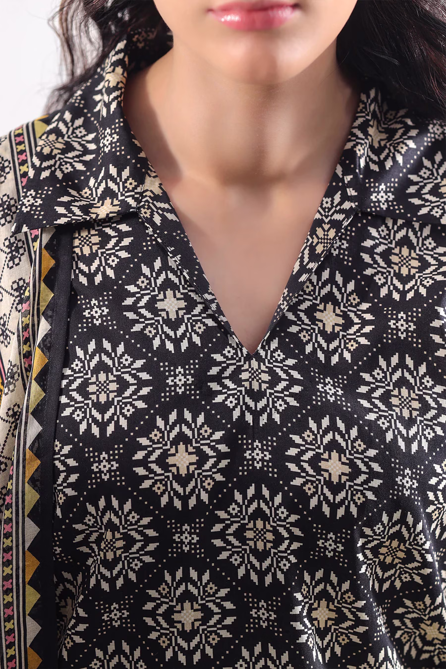 Crafted from premium lawn fabric, the unstitched shirt features a soft texture and a vibrant black color with an elegant printed design. The printed lawn dupatta adds a touch of flow and femininity complete the look with a clean, breathable finish — ideal for hot weather.